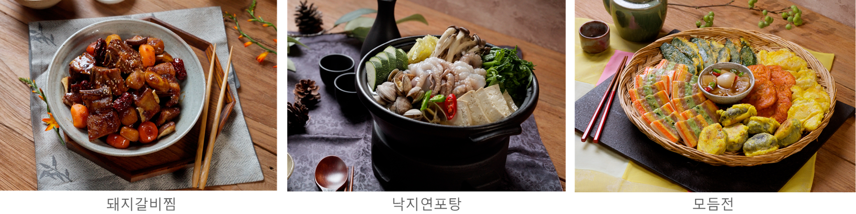 넉넉한 양념에 푹 고아낸 부드러운 고기가 특징인 돼지갈비찜🍖은 예로부터 명절 상차림에서 빠지지 않는 대표 메뉴에요. 고소하고 달콤한 맛으로 남녀노소 구분 없이 즐길 수 있고, 한 끼 든든한 메인찬이 되죠. 돼지갈비찜과 어울릴 만한 국으로는 낙지연포탕🐙을 추천해요. 탱글한 식감의 낙지와 담백한 두부, 각종 채소가 어우러져 얼큰하면서도 개운한 국물 맛을 내는데요. 자칫 느끼할 수 있는 돼지갈비찜 같은 명절 메뉴와 잘 어우러지죠. |