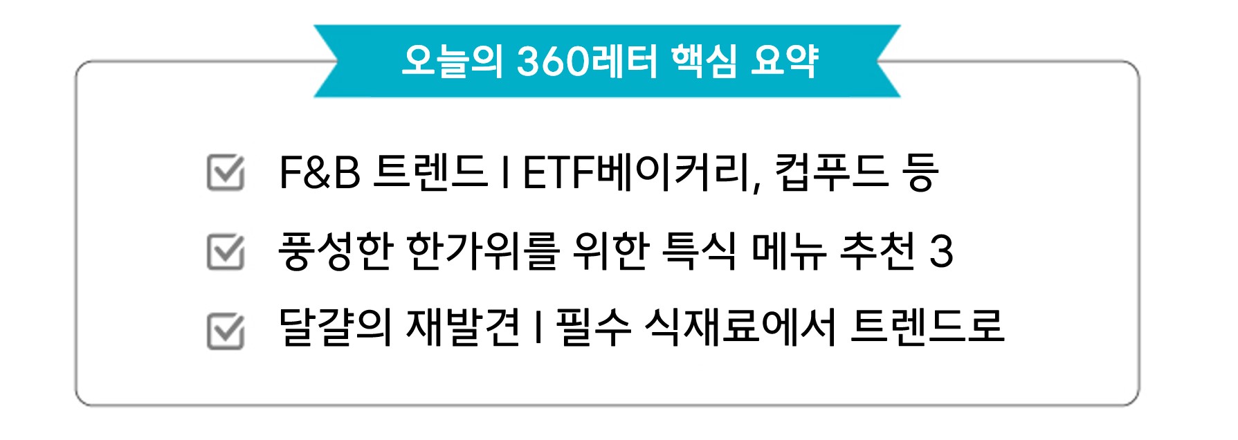 아침, 저녁으로 불어오는 선선한 가을바람🍂을 느끼고 계신가요? 올해 여름은 유독 덥다고 느낀 분들이 많으실 텐데요. 폭염·폭우가 끊이지 않았던 여름에는 제철 식자재의 가격 변동이 컸는데요. 새로운 계절을 맞이한 만큼, 식자재 가격에도 안정이 찾아오길 바라며 오늘의 360레터 시작할게요. 😊 |