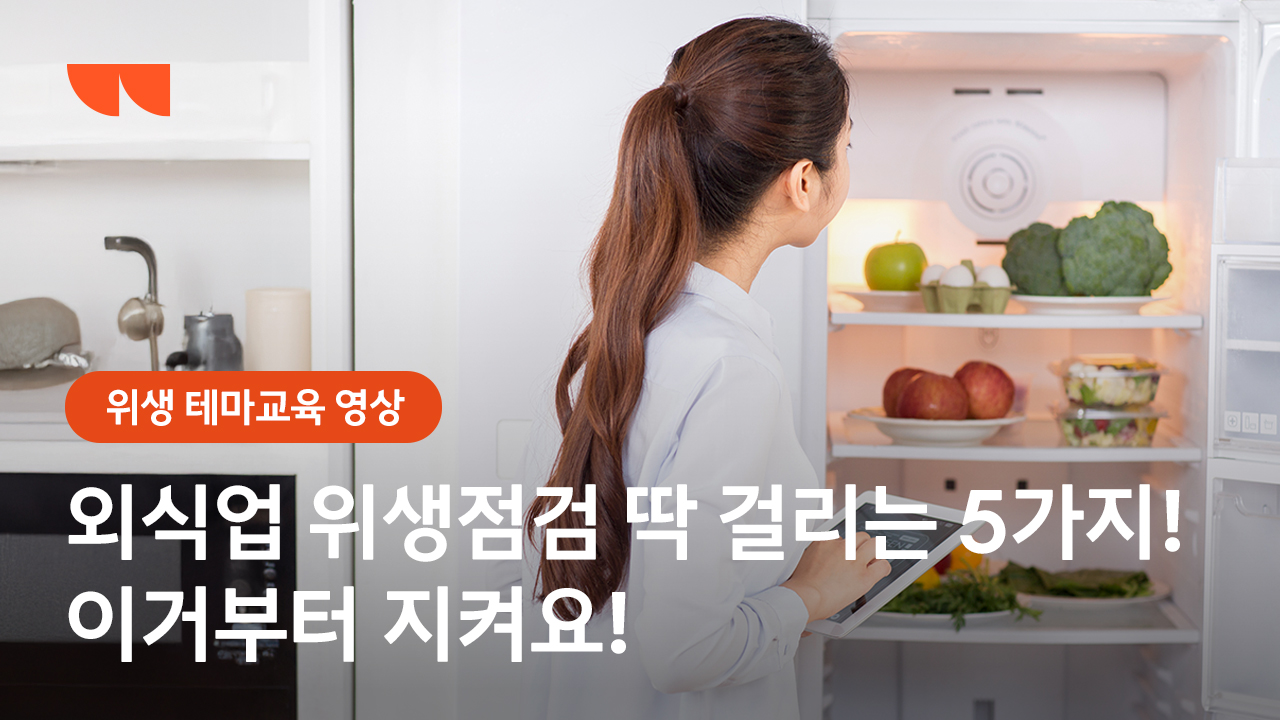 외식 사업장 위생 점검 시 주로 적발되는 주요 이슈 5가지는 냉장/냉동고 온도 관리, 칼∙도마 구분 사용, 직원의 개인 위생, 식재료 보관 상태, 식용유 산가 관리 인데요. 교육 영상을 통해 자세히 안내드릴께요... |